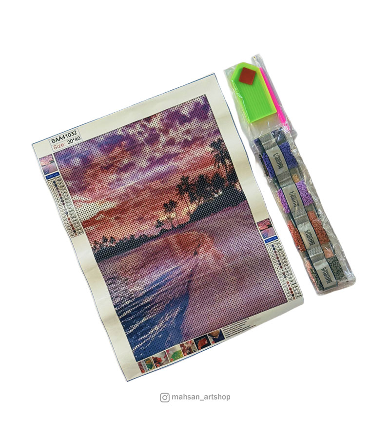 نقاشی الماسی رولی 30 در 40 طرح ساحل بنفش