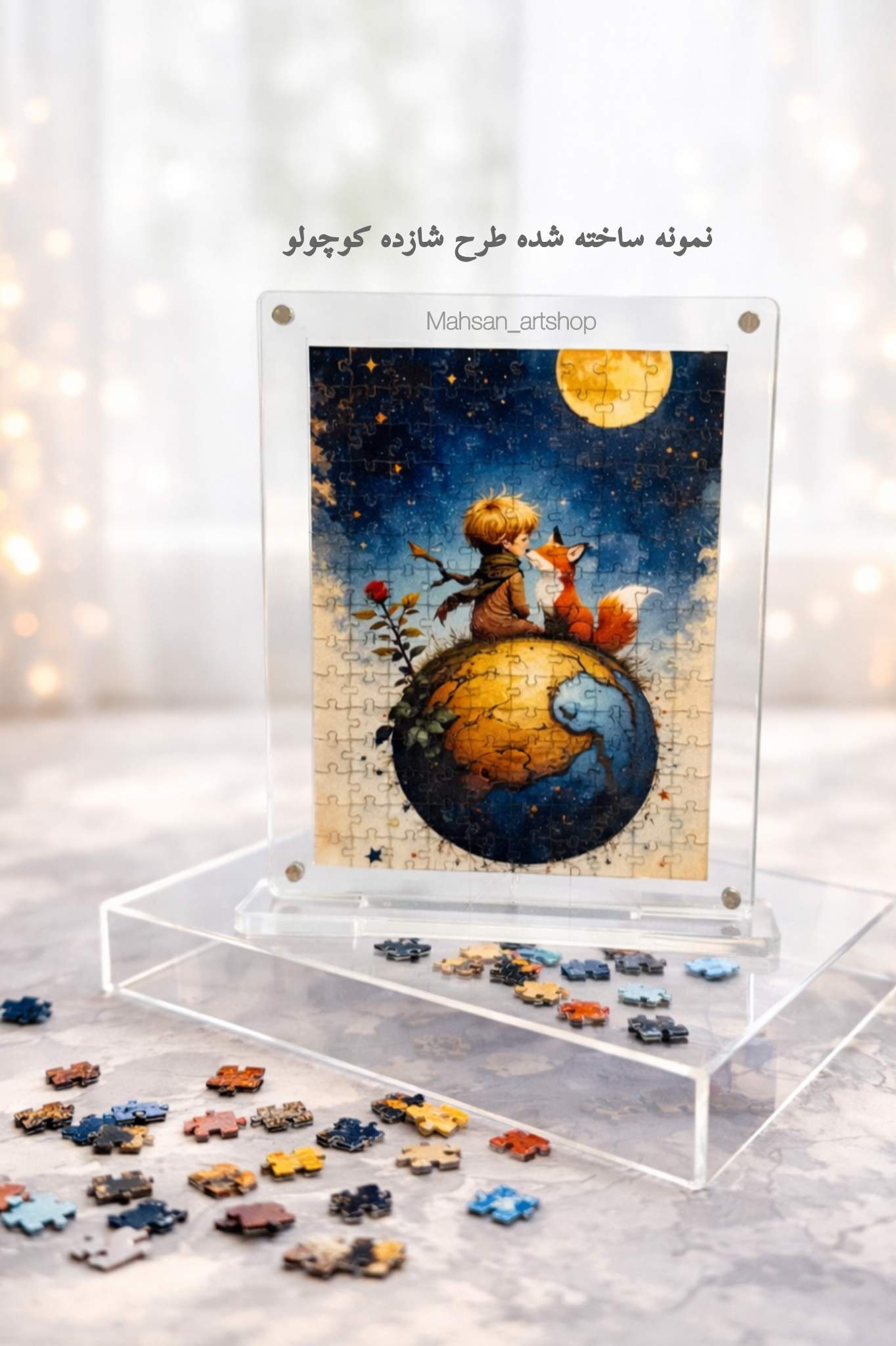 پس از تکمیل، پازل داخل فریم پلکسی مخصوص قرار میگیرد و نیازی به چسب پازل ندارد.