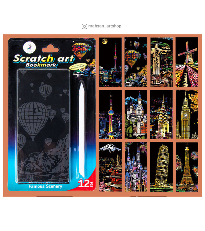 اسکرچ برد (نقاشی خراشیدنی) مناظر معروف بسته 12 عددی