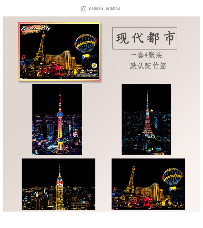 اسکرچ برد (نقاشی خراشیدنی) شهر مدرن سایز A5 بسته 4 عددی