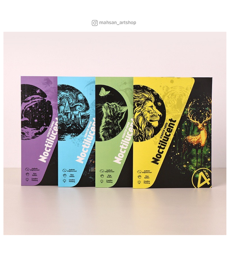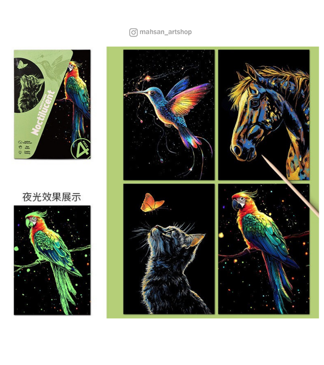اسکرچ برد (نقاشی خراشیدنی) شبرنگ حیوانات سایز A5 بسته 4 عددی