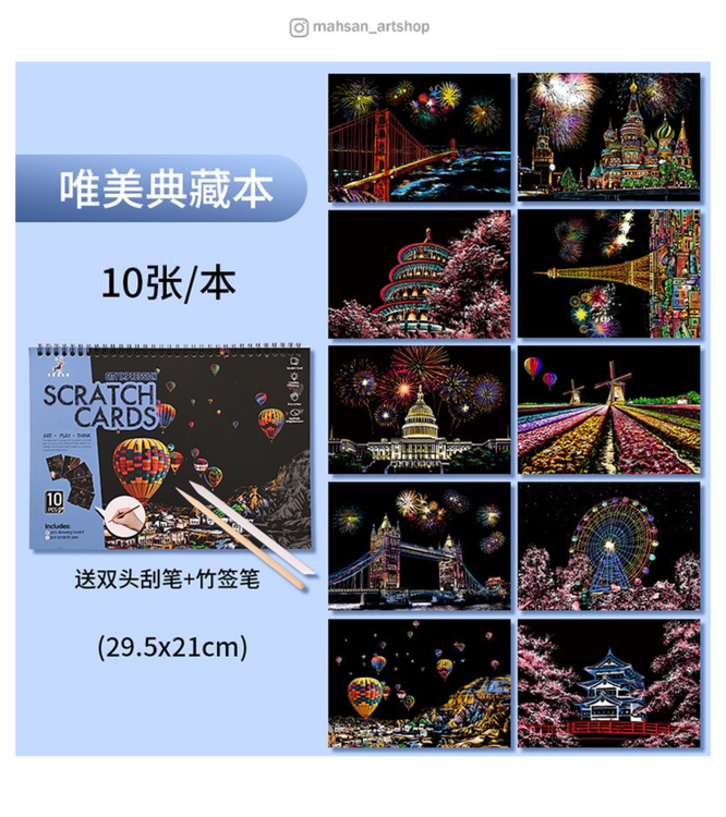 اسکرچ برد (نقاشی خراشیدنی) خاطره شهر سایز A4 پک دفتری 10 عددی