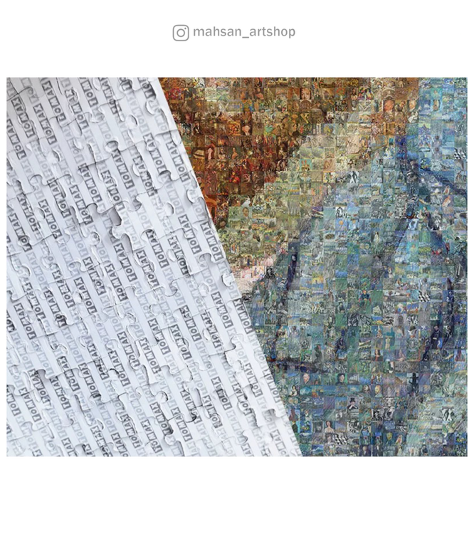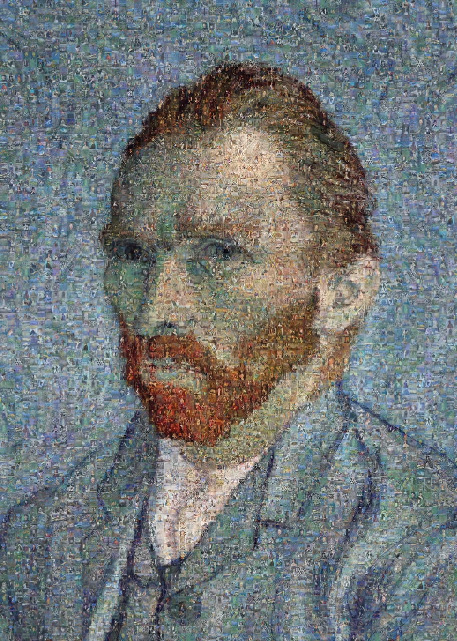با دقت در تصویر کامل شده، متوجه میشوید که چهره ونگوگ در واقع از ترکیب و کنار هم قرار گرفتن صدها اثر هنری مشهور و چهرههای شناخته شده ساخته شده است. هر قطعه پازل، بخشی از یک تابلو نقاشی معروف یا پرترهای از یک شخصیت برجسته است که از دور، همه این جزئیات در کنار هم تصویر کامل و آشنای ونگوگ را خلق میکنند.